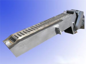 該設備是由若干組特殊形狀耙齒組,按一定的排列次序裝配在耙齒軸上形成封閉式耙齒鏈,下部安裝在進渠水體中。當鏈輪作勻速定向旋轉時,整個耙齒鏈也隨著運動,吸附在池耙上的固體雜物從液體中分離出來,流體則通過耙齒的柵隙流過去,整個工作狀態連續進行。