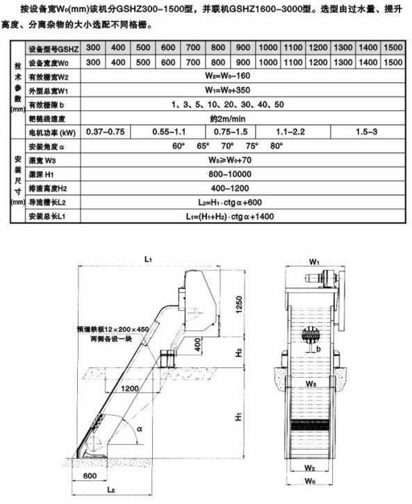 1、渠深、渠寬、排渣高度,標準排渣高度為800mm;